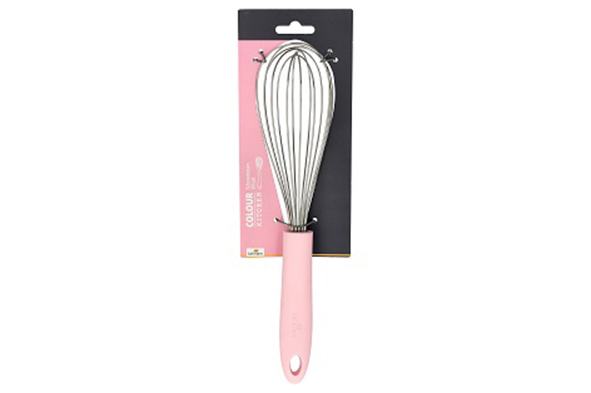 Birkmann Garde Zachtroze-29cm: De klopper is het perfecte bak accessoire voor iedereen die van koken en bakken houdt. De roestvrijstalen kop en ergonomische siliconen handgreep zorgen voor optimaal comfort en efficiëntie tijdens het kloppen, roeren of mixen – of je nu slagroom, luchtig beslag of gladde sauzen maakt.