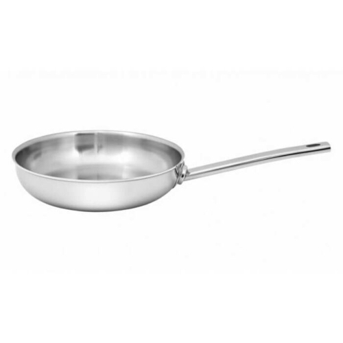 De knappe roestvrijstalen Ecoline 5 koekenpan van 28 cm is heerlijk om mee te werken en geeft mooie resultaten. Ze ligt goed in de hand en werd tot aan de rand opgebouwd uit 5-lagenmateriaal. Die solide combinatie van legeringen verdeelt de warmte goed zodat je gelijkmatig en gecontroleerd kunt bakken. Zelfs op een lage stand. Of je nu kotelet, tonijnsteak of kippenfilet bereidt, in deze pan bak je alles mooi gelijkmatig aan. De binnenkant blijft lekker mals en de smaak komt optimaal tot zijn recht. De kleine aanbaksels kun je deglaceren voor een rijke saus. Ook aardappeltjes geef je snel en goed een krokant korstje, in een mix van boter en olie. Deze Ecoline 5 koekenpan is geschikt voor alle kookplaten, inclusief inductie. Zodra de pan voldoende opgewarmd is, kun je het fornuis een stand lager zetten. De juiste baktemperatuur wordt behouden, waardoor je energie bespaart. Durf je al eens met mes en vork in een pan te zitten? Geen stress, dit exemplaar uit onze Ecoline 5 serie kan ertegen. Nog een voordeel: de stevige, gelaste steel blijft lang koel. Meer dan degelijk, efficiënt en aangenaam in gebruik. Topdeal qua prijs-kwaliteit!