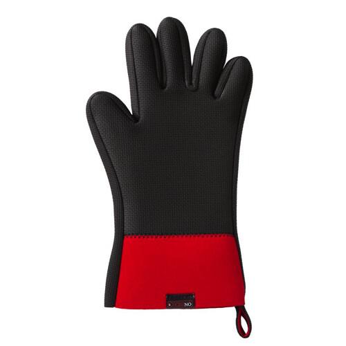 Deze neopreen anti-slip Handchoen van Il Cucinino zorgt ervoor dat u uw handen niet verbrand wanneer u een gerecht uit de oven haalt. De handschoen is gemaakt van neopreen en is tot 260 graden hittebestendig. Daarnaast is de want ook waterbestendig zodat uw handen ook worden beschermd wanneer de want nat is. De handschoenen worden per stuk geleverd en kunnen ook opgehangen worden.