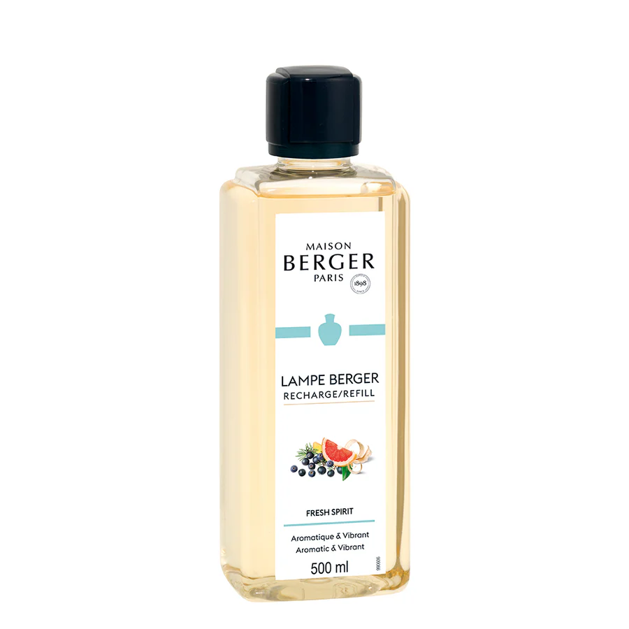 Lampe Berger Huisparfum Fresh-Spirit-500ml: Haal de energie van zonnige dagen in huis met de Lampe Berger Fresh Spirit 500ml Refill met de frisse geuren van jeneverbes en grapefruit.