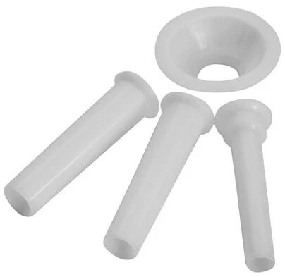• Set van 3 vultrechters met verschillende diameters (1.3, 1.6 resp. 1.9 cm) en een adapter